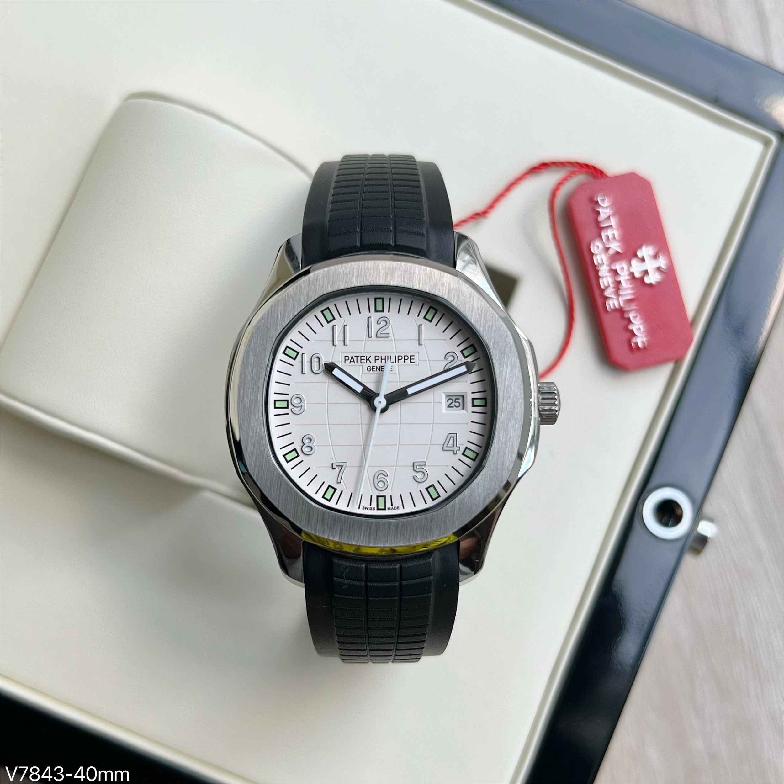 BASE ETA ( CLONE ) PATEK PHILIPPE NAUTILUS AUTOMÁTICO PULSEIRA PRETA FUNDO BRANCO