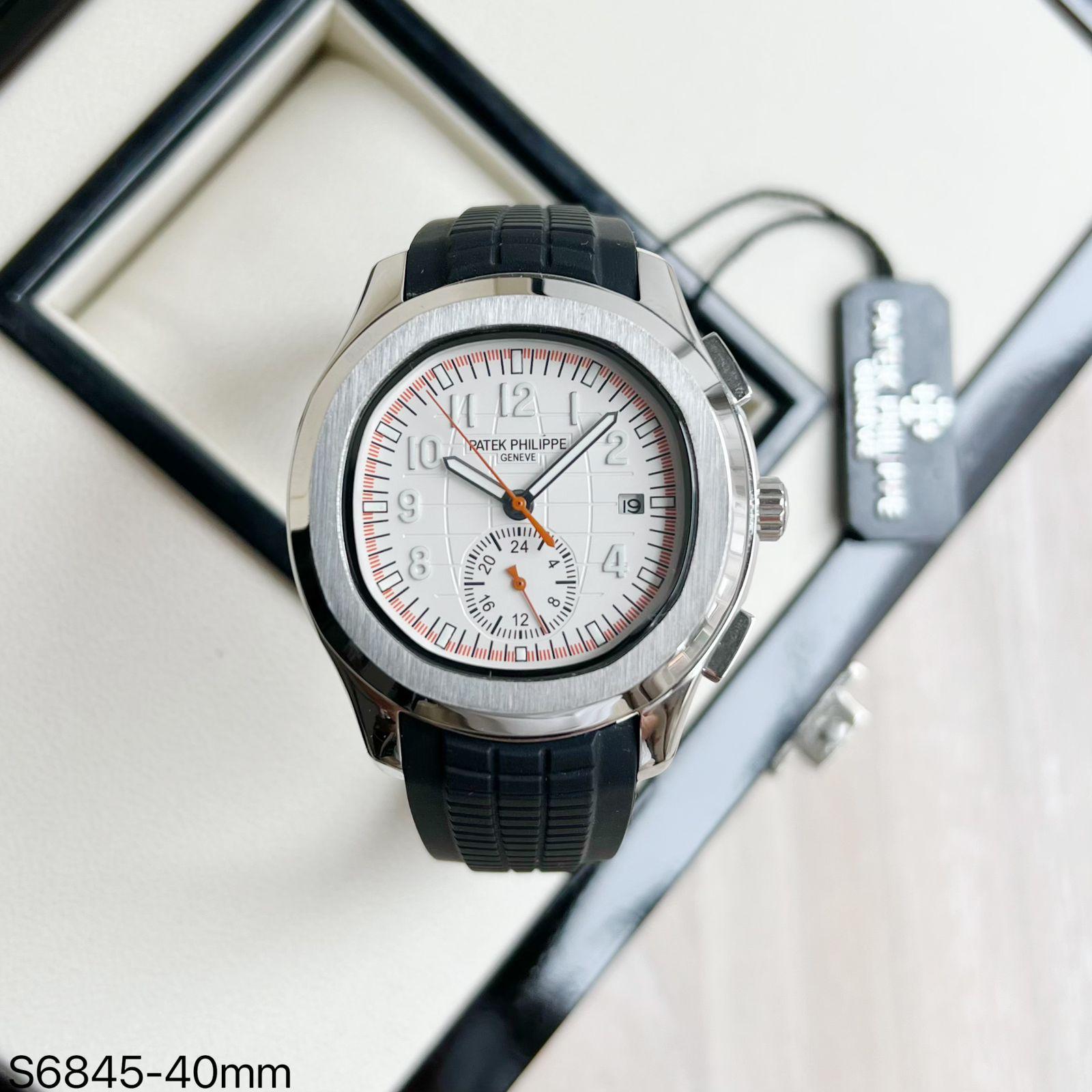 BASE ETA ( CLONE ) PATEK PHILIPPE NAUTILUS AUTOMÁTICO PULSEIRA PRETA FUNDO BRANCO E CHRONOFRAGOS